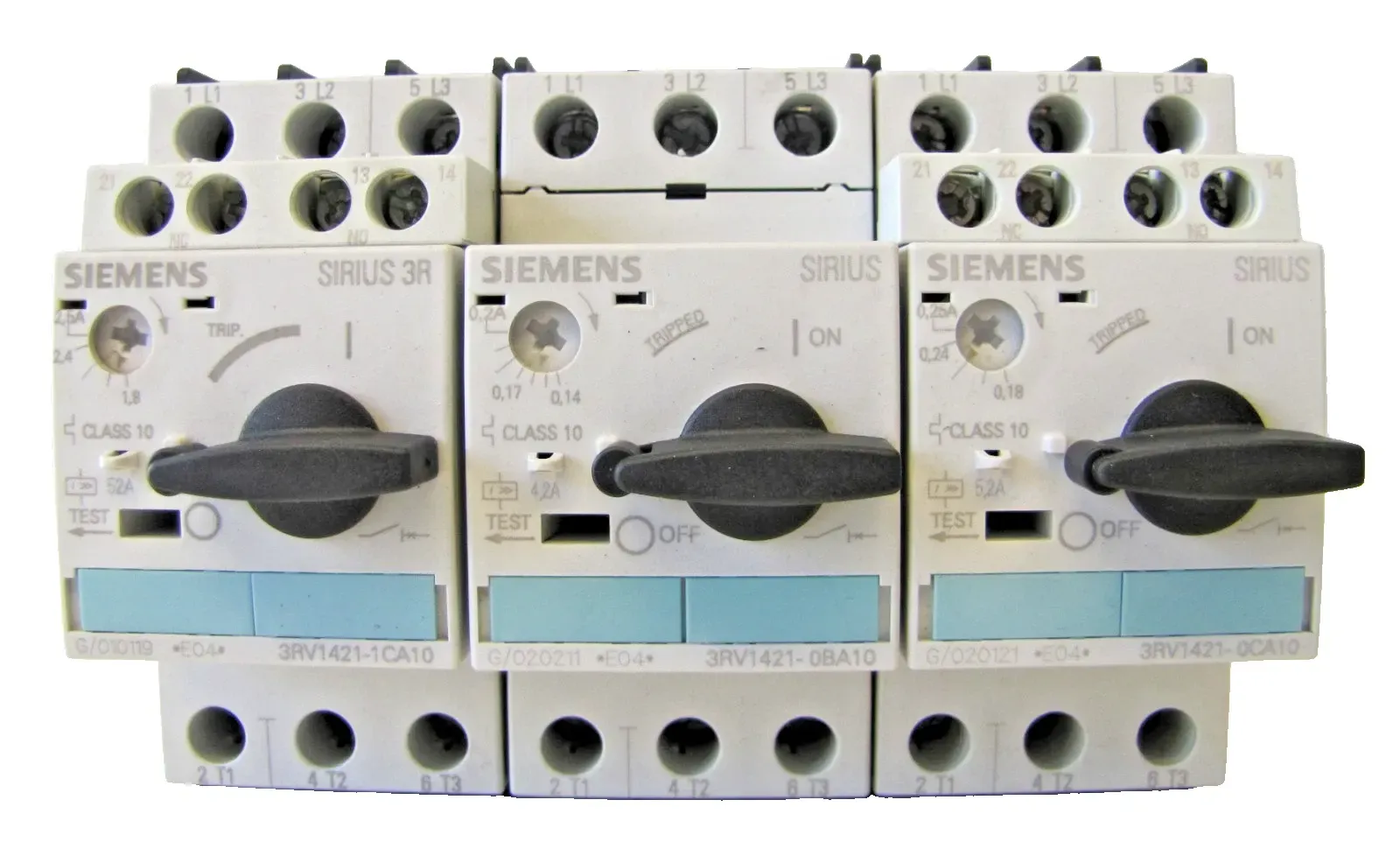 Lot of 3 Siemens Manual Starters 3RV1421 1CA10 0CA10 0BA10 2.5A .25A .2A