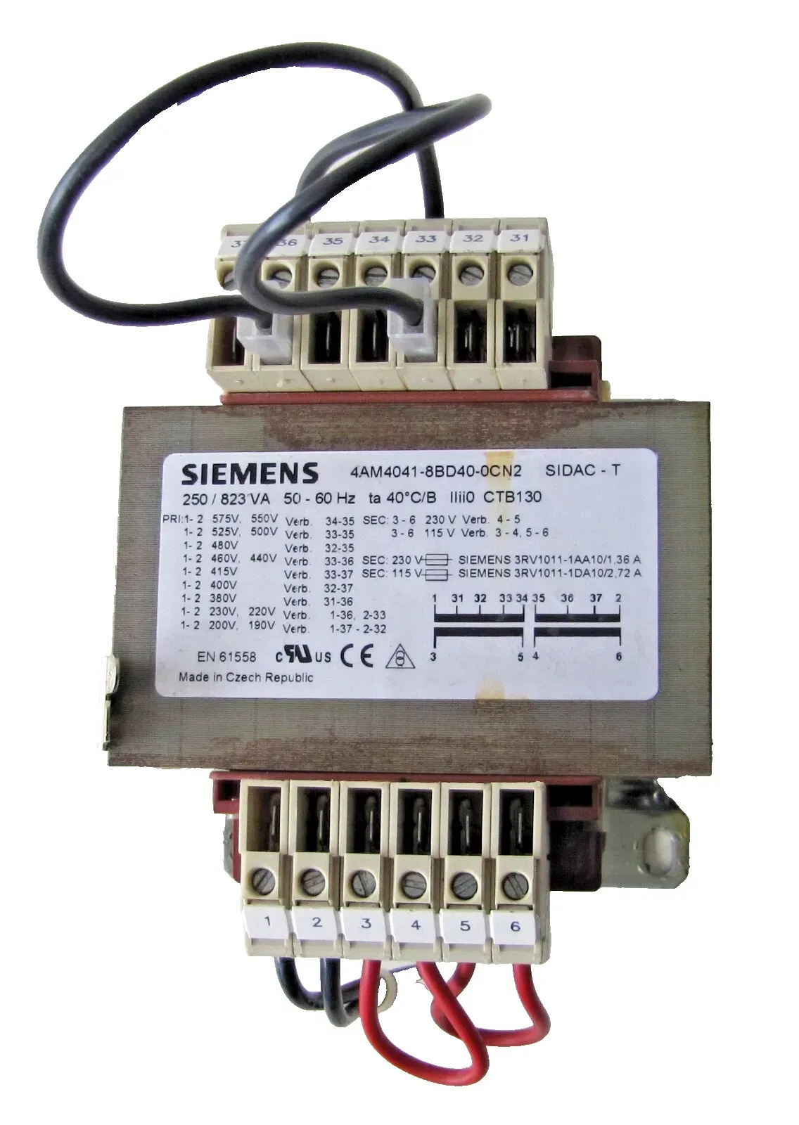 Siemens 250 / 823 VA Power Transformer Primary 230/460V Secondary 230/115V