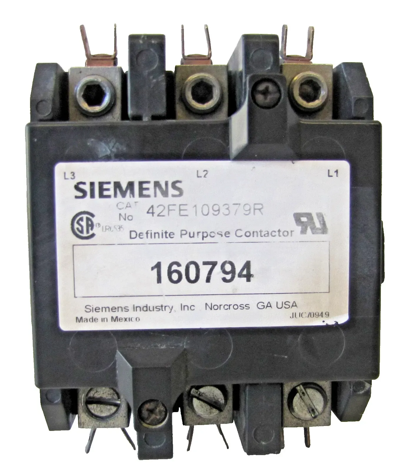 Siemens 75 Amp Definite Purpose Contactor 42FE109379R 3 Pole 24V Coil 50/60Hz
